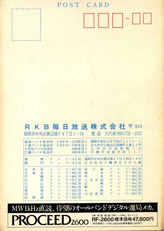 RKB Mainichi Broadcasting Corporation (RKBËèÆüÊüÁ÷³ô¼°²ñ¼Ò, RKB mainichi hoso kabushiki gaisha) (stylized as +rkb) is a broadcasting station in Fukuoka, Japan, and it is affiliated with Japan Radio Network (JRN), Japan News Network (JNN) and TBS Network.